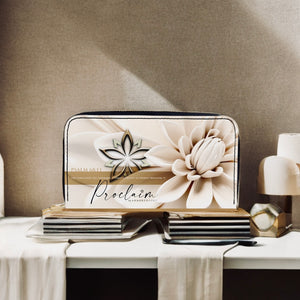 The Proclaim Long Wallet is more than a beautiful accessory — it’s a daily declaration of faith. Featuring the Proclaim logo and the foundational verse Psalm 68:11 — “The Lord gave the Word; great was the company of women who proclaimed it.”, this wallet embodies the heart of the movement: bold, grounded, and unapologetically Kingdom.