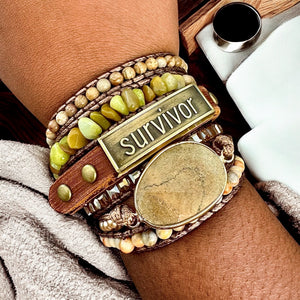 Featuring the Survivor Leather Wristlet and the grounding Earthtone Long-Strand, this duo blends bold faith with natural strength. It’s more than style—it’s a declaration that what tried to break you only built you.