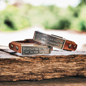Featuring a matching set of the What God Has Put Together Leather Wristlet, this stack makes the perfect gift for anniversaries, weddings, or just because. Simple, stylish, and rooted in scripture—it’s a declaration of unity that fashion can’t separate.