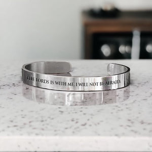 Find courage and reassurance with The Lord Is With Me, I Will Not Be Afraid Bangle, crafted from premium stainless steel blends strength and elegance.